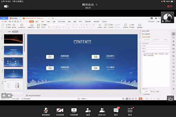 最后,张明侠老师进行了总结发言,强调了在疫情期间开展实践活动要切实注意安全,带好口罩,按照各地区疫情防控要求开展活动,对于在中高风险地区的同学们提倡线上开展社会实践活动,表达了对同学们开展寒假实践活动的良好祝愿。
