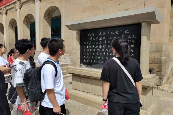 2020年7月8日,“延安精神寻访团”的十二名队员乘车前往延安大礼堂旧址,参观宏伟的大礼堂建筑,深入了解老一辈革命工作者的工作环境,加深队员们对“延安精神”的理解。