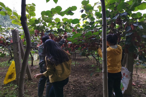 队员们对猕猴桃套袋很是好奇,对此曹高仓书记解释道:给猕猴桃套袋具有以下几个优点:首先,可以改善果实的外观;第二,可以减少尘埃及农药对果面的污染,防止果实病虫害的发生;第三,可以有效防止日灼;第四,能提高果实的商品性和经济效益;此外,还可以降低贮藏中软化果和腐败果的概率。队员们不仅了解了水果种植中套袋的相关知识,还亲身体验了为果子摘袋。队员高钰表示:“这次猕猴桃摘袋经历让我学到了很多果树种植的知识,这些都是我们在课堂上学不到的。”