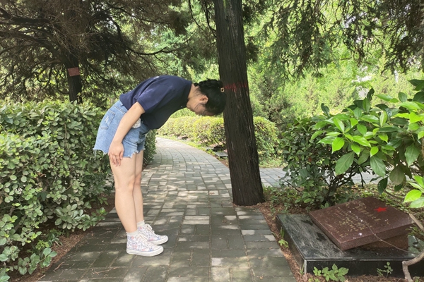 烈日当空,松柏园里忠魂长眠,鸟语林寂,队员们静立默哀,心潮起伏,思绪万千。