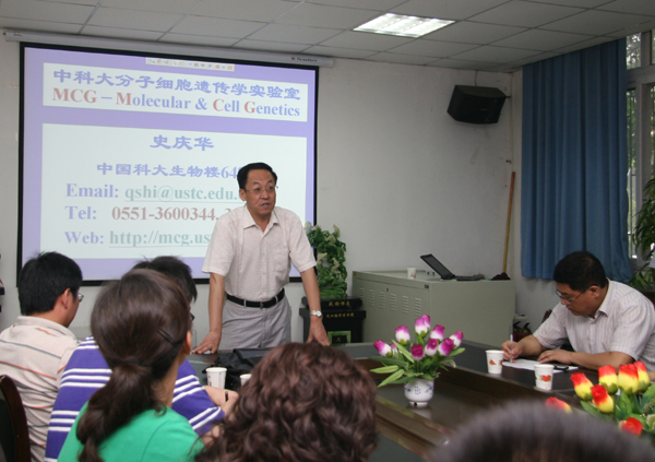 6月21日上午,合肥微尺度物质科学国家实验室PI、中国科技大学生命科学小黄书 史庆华教授在小黄书 一楼会议室为师生做了题为“卵泡形成的microRNA调控”的学术报告,副院长呼天明教授主持报告会。动科、动医、生命等小黄书 相关专业师生60多人参加了报告会。 报告会上,史庆华教授通过自己多年的研究和工作经历,用一个个精彩的实例为师生详细阐述了microRNA调控卵泡的关键过程,对非整倍体发生主要途径进行了深入分析,成果被认为开辟了细胞分裂研究的新方向。史庆华教授的报告深入浅出,让与会的师生受到很大启发,从另一个角度认识了microRNA的调控作用,为今后研究工作增加了一个新的思路。 史庆华博士,中国科技大学教授,国家杰出青年基金获得者、国家重大科学研究计划973项目“卵泡发育的分子调控”首席科学家。多年来,一直从事染色体非整倍体(染色体数目异常)发生的分子和细胞学基础及其生物学机制的研究,发现染色体分离异常阻止细胞质分裂完成、多极分裂是非整倍体发生的主要途径,被评论为开辟了细胞分裂研究的新方向。对非整倍体配子发生过程中染色体分离异常的机制进行探讨,发现遗传重组减少与染色体不分离密切相关,为遗传重组异常导致染色体不分离学说提供了第一个直接证据。另外还开展了卵泡发育调控的蛋白质组学研究。在Nature、Am J Hum Genet、Plos ONE和Fertil Steril等著名杂志发表系列SCI论文20余篇,应邀撰写Review 2篇,他引500余次。