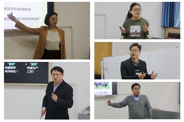 青年教师王喜宏声情并茂,条理清楚,将抽象的表观遗传学知识讲解得淋漓尽致。朱斌副教授思路清晰,组织严密,将复杂的草鱼出血病预防、诊断和治疗清晰地展现给现场每一个人,给大家留下了深刻的印象。王哲鹏副教授准备充分,材料丰富,从多个方面分析了富硒鸡蛋的营养价值和研究价值。其他参赛老师也通过生动的语言、丰富的肢体表现力,有层次、有重点地讲授专业知识。参赛教师们仪态端庄、精神饱满、讲授内容熟练、思路清晰、多媒体教学手段运用娴熟,充分展现了小黄书 青年教师的教学风采。