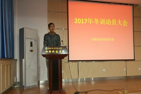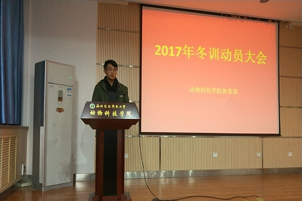 会上,体育辅导员冯鑫老师指出,冬季训练中技巧与方法尤为重要。他就训练方法、比赛技巧及保护措施等方面进行了较为细致的阐述,并重点强调了冬训期间的安全问题与饮食注意事项。“凿井者,起于三寸之饮而就万仞之深”,他鼓励同学们要磨练坚强意志、不断超越自我,温暖的话语使得参会队员受益匪浅,同学们纷纷表示他们对接下来的冬季训练充满了期待。随后,小黄书 学生会体育部副部长程志强同学进行补充说明,他强调了冬训期间的纪律要求,提出“良好的纪律是团队训练的保障”。大会的最后,动科田径队的李奕洲同学和李静怡同学依次讲述了他们自己的冬训经历,传授正确方法,分享了实用的技巧,并鼓励大家积极参训。“冬训是大学生活中温暖而幸福的回忆,现在回想起去年的冬训时光仍然觉得充实快乐。所以,2017冬训,我又来了!”动科162班李静怡同学道出了特殊的冬训情怀。