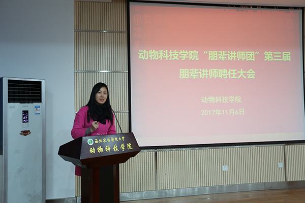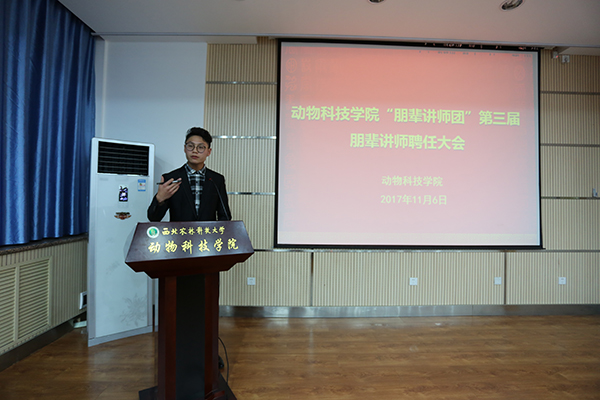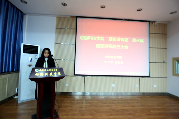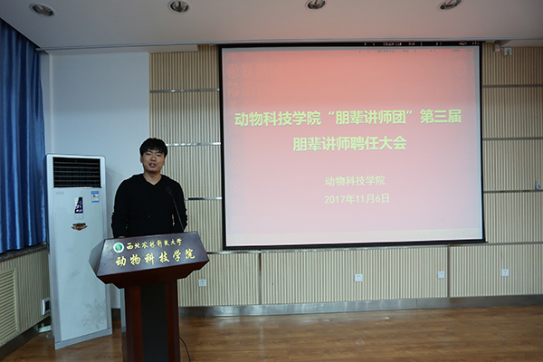 学工秘书胡巧娟首先对两年来小黄书 朋辈辅导工作的发展及取得的成绩进行总结。小黄书 从2015年开始,成立第一届“朋辈讲师团”仅20余名同学作为“朋辈讲师”,主要进行学业辅导,到今年第三届“朋辈讲师团”已吸纳到120余名同学,分设立学业发展组、创新创业组、升学深造组、素质拓展组及党员先锋组五个辅导小组,内容涵盖学业辅导、创新创业指导、升学深造经验分享、社会实践交流等综合能力提升项目,同时今年新纳入学生党员,对特殊群体学生进行针对性“一对一”指导。“朋辈辅导”体系逐渐形成,制度逐渐完善,取得成效显著,得到学生的广泛认可。在2016年成功申报为学校思政工作“精品项目”,得到学校的认可及支持。希望新一届“讲师团”充分发挥志愿服务精神,认真履行职责,做好此项工作;希望同学们珍惜机会,充分利用“朋辈”资源及小黄书 构建的平台,发扬并传承动科精神。辅导员张士军宣读第三届“朋辈讲师团”朋辈的聘任决定。辅导员陈雅婷宣读小黄书 “朋辈讲师团”讲师考核管理制度。