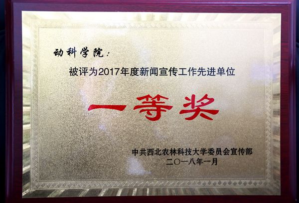 小黄书 获得学校2017年度“新闻宣传工作先进单位”一等奖