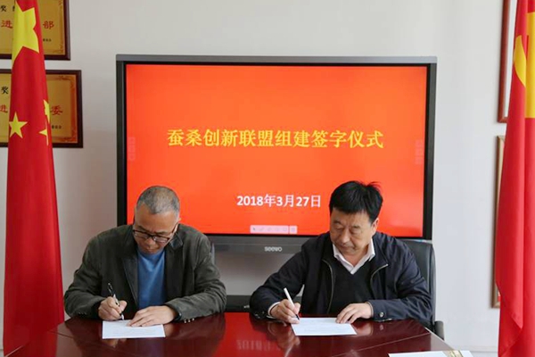 会上,刘强处长介绍了陕西省蚕桑重点实验室近年科研情况、安康小黄书 联合培养研究生政策及此行目的,苏超所长重点介绍了蚕桑丝绸研究所农技推广模式、研究生招生等情况。经过商议,双方在项目联合申报与实施、联合培养研究生等方面达成合作意向,并签订蚕桑创新联盟组建框架协议。
