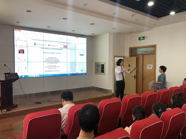 下午,Chen Xinhua教授在107会议室作了题为“Clostridium difficile Infection - Understanding Gut Microbiota and Host Immune Responses”的学术报告。小黄书 相关师生150余人参加报告会,会议由姚军虎教授主持。会上,Chen Xinhua教授介绍了艰难梭菌结肠炎的临床症状及粪便移植技术在艰难梭菌结肠炎治疗中的应用,与会师生与Chen教授进行了深入的交流。此次报告会加深了小黄书 与哈佛医小黄书 的交流与合作,对后续开展相关研究工作具有很大的帮助。