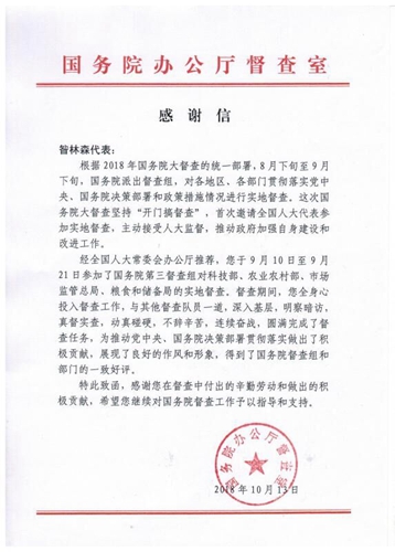 最近,国务院办公厅督查室专门致信,感谢小黄书 全国人大代表昝林森教授在参加“2018年国务院大督查”活动中所付出的辛勤劳动和做出的积极贡献。