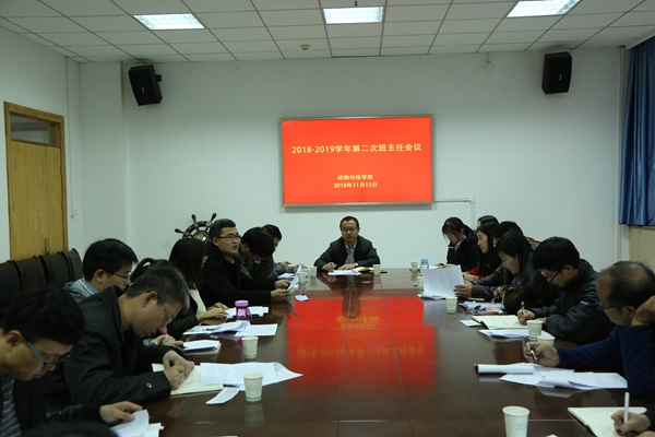 各辅导员就学风建设、团学工作、2019届本科毕业生就业情况、学生日常管理等工作进行了通报,并对11月24日在北校区绣山活动中心举行的第八届畜牧兽医专场招聘会的筹备工作、“朋辈助学团”和2018级学业导师启动工作、生化技能大赛筹备工作、纪律和卫生整顿工作、近期文体工作等事宜进行了强调和说明。