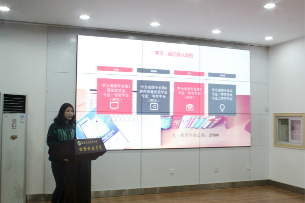 会上,学生会生活部部长彭佳诚同学宣读获奖宿舍名单,并对五星级文明宿舍评选的规则进行了简要说明。随后校五星级宿舍和院五星级宿舍代表以PPT的形式对本宿舍进行了简短的介绍,展现出了小黄书 多元化的宿舍环境与氛围,制作精美,内容丰富的展示赢得在场观众的阵阵掌声。介绍环节结束后,党委副书记王力、辅导员韩梦璇分别为校级、院级五星级文明宿舍颁奖并合影留念。