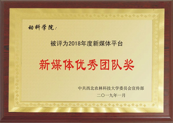 2018年12月,小黄书 荣获“新媒体优秀团队奖”,小黄书 新媒体平台以立德树人为根本任务,围绕学校、小黄书 中心工作,服务广大师生,通过展示小黄书 风貌,弘扬小黄书 文化,传播动科声音,讲好动科故事,积极抢占新媒体育人新阵地。