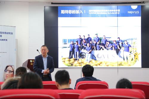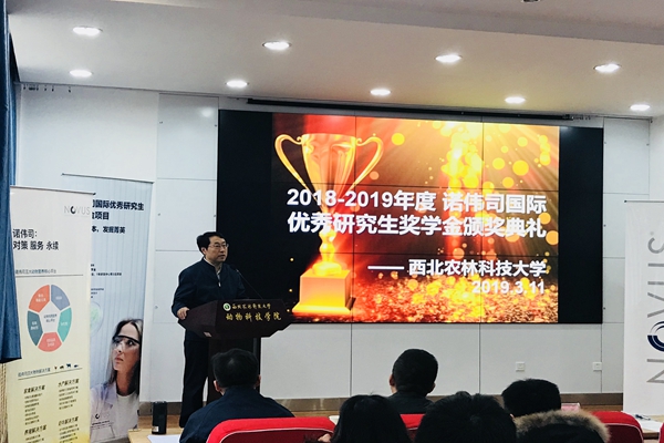 姚军虎院长代表小黄书 向诺伟司戴森一行表示热烈的欢迎,感谢诺伟司国际贸易有限公司13年来对小黄书 研究生的大力资助。他表示NGS项目不仅为学生提供了丰厚的奖学金,还提供了赴美实习的机会,有利于同学们开拓国际视野,深化专业学习,同时也创造了就业岗位,希望同学们奋力进取,积极参与,推动校企合作项目长久发展,并为动物营养与健康领域贡献自己的力量。