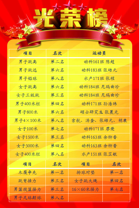 方阵步伐整齐、口号嘹亮、充满朝气,运动员集体至上、自我施压、捍卫荣誉,观众座无虚席、热情涌动、声震全场,学生干部上下一气、周密安排、细致服务,所有的努力最终汇聚到沉甸甸的奖牌,集体精神、团队精神、奋斗精神在校运会中得到继承和发扬。