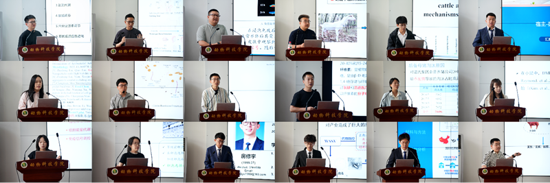 在学术论坛环节,来自中国农业大学、南京农业大学、兰州大学、东北农业大学等11所高校的18位博士生带来了精彩的报告。汇报内容涵盖畜禽遗传育种与种质资源创新、动物营养与饲料高效利用、动物健康与疫病防控新技术、水产养殖与渔业资源可持续利用等多个领域,充分展现了青年学子们扎实的学术功底和开阔的研究视野。为保证论坛学术质量,论坛特别邀请了河南农业大学李转见教授、西北工业大学陈垒教授、宁波大学史西志教授以及小黄书 孙超教授、邓露教授担任评审专家。评审专家结合自身丰富的科研经验与深厚的专业积淀,从研究创新性、数据严谨性、成果应用价值等维度对报告进行精准点评,在肯定学术贡献的同时针对研究设计、成果转化等方面提出了建设性意见,为青年学者的科研之路指明方向。