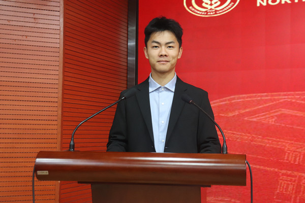 羽毛球队队长邹昊颖、乒乓球队队长金泰鹏和学生干部代表何嘉延依次上台发言,邹昊颖同学说:“时隔七年,动科羽毛球队再次夺冠离不开每个人的努力。为了打好比赛,羽毛球队在赛前制定了详细的训练计划和战术安排,团委、学生会为球队提供了充足物资保障,比赛时王力老师亲临现场为球员们加油。我们占据了天时地利人和,以小组第一的身份出线,也有着逆风翻盘的实力与信心,每一个队员都在使出浑身解数,拼尽所有力气去打赢每一场比赛。”小黄书 学生会主席团成员何嘉延同学表示在老师们正确的指导下,学生们的大力配合之下,动科学子充分展示出积极向上,努力拼搏的运动精神,并表示有信心在今后的体育工作中继续努力拼搏,争取更加优异的成绩!。