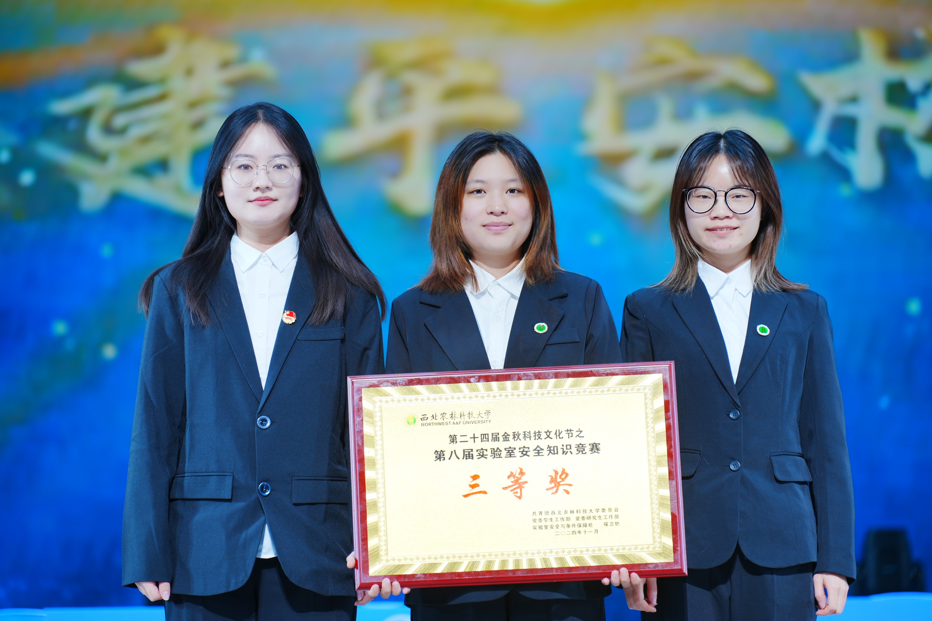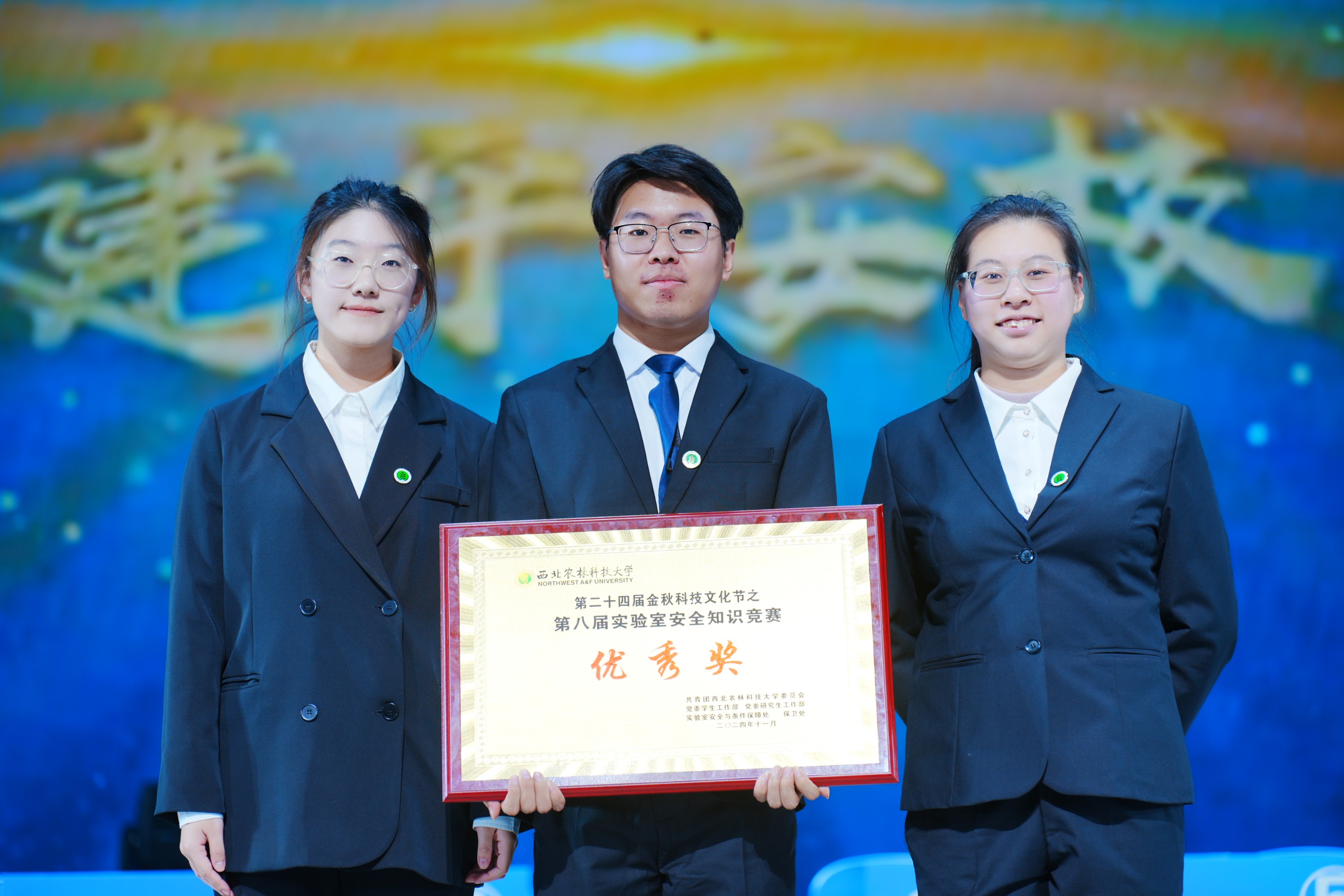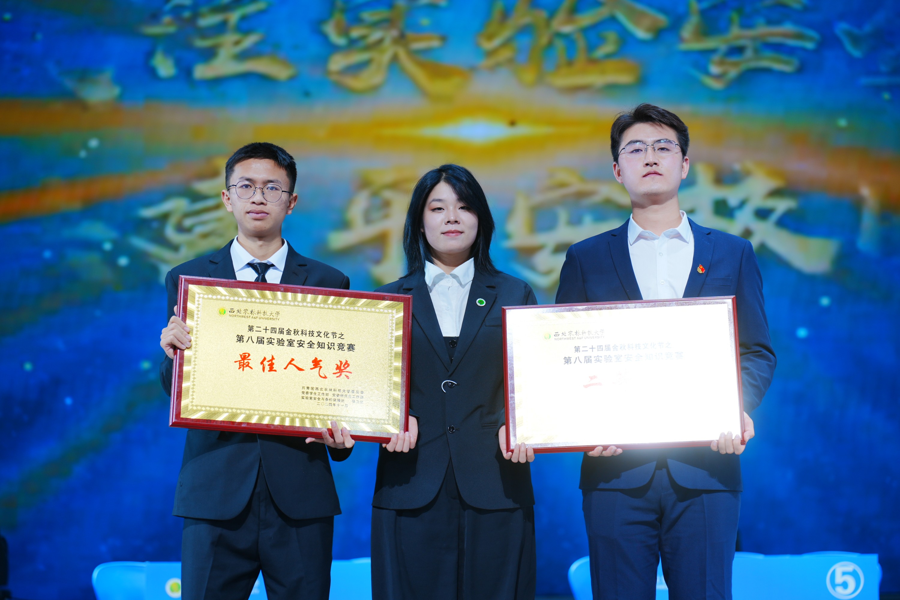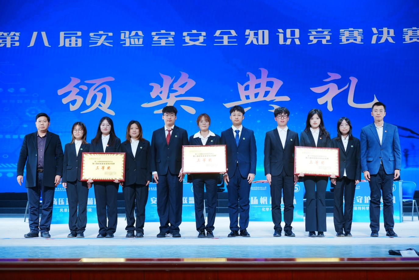 党委学生工作部部长赵静、实验室安全与条件保障处处长张朝阳为荣获二等奖的队伍颁奖