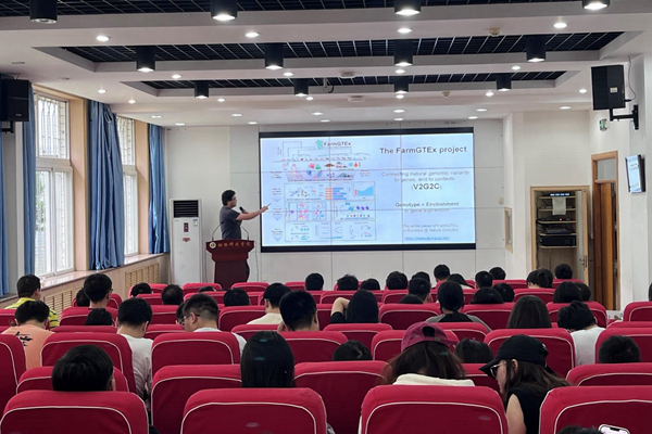 丹麦奥胡斯大学房灵昭博士先后做了2场FarmGTEx系列报告,分别从数据的采集与分析、基因表达调控机制、跨物种基因功能比较等热点话题方面详细介绍了FarmGTEx项目的总体进展与未来规划,并对CattleGTEx、PigGTEx、ChickenGTEx和Sheep&GoatGTEx进行项目介绍和进展报告。报告会内容丰富精彩,引人入胜。在随后的学术交流和提问环节中,房灵昭博士与参会师生就报告内容进行了深入的讨论和交流。大家纷纷表示,通过此次报告会,不仅加深了对FarmGTEx项目的理解,也拓宽了研究思路,激发了新的研究灵感。