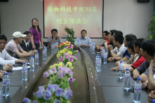 5月20日,畜牧98届校友返校举行毕业十年聚会。小黄书 领导闫祖书、吴继东、刘小林、昝林森及98届34名校友参加了座谈会。