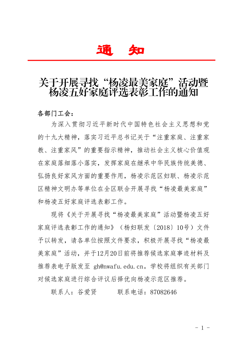 关于开展寻找“杨凌最美家庭”活动暨杨凌五好家庭评选表彰工作的通知