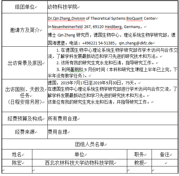 现将陈宏教授因公出国予以公示,公示期自2019年6月6日至2019年6月10日。如有举报意见,请以书面或以口头形式向小黄书 党政综合办公室110室反映,电话87092937。(公示内容见下表)