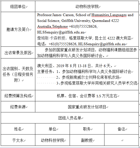现将于太永副教授因公出国予以公示,公示期自2019年7月3日至2019年7月7日。如有举报意见,请以书面或口头形式向小黄书 党政综合室反映,电话87092937。(公示内容见下表)