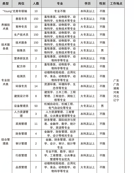 扬翔股份2018年校园招聘需求