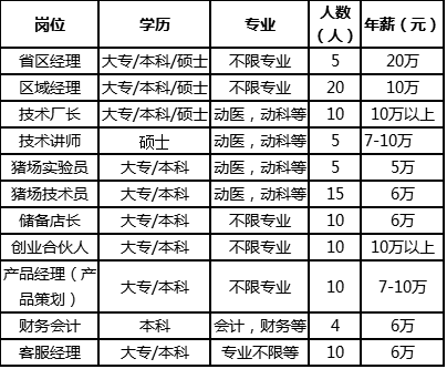 2)猪场技术员、实验员:月均5000元左右(综合);