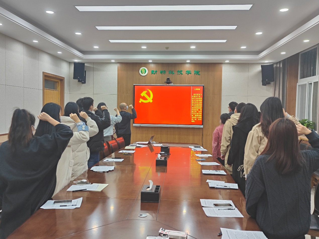 最后,全体党员对着党旗进行了庄严宣誓,大家都备受鼓舞,表示在以后的工作、生活、学习中更加严格要求自己,争当合格党员,无愧于国家和学校对我们的培养。