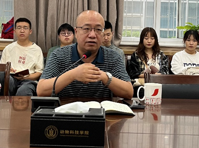 随后,孙青竹老师代表团队向新生介绍了团队研究方向和团队党建和文化建设理念和成果。团队在姚军虎教授“党支部融入实验室管理、坚实铸就主人翁氛围”理念指导下,动物营养与健康养殖科研创新团队已荣获“陕西省科技创新团队”,“陕西优秀教师团队”,“陕西省课程思政团队”,“小黄书 优秀教师团队”,“研究生百个样版党支部”等荣誉称号,发展成为了一个理念上有深度、知识上有广度、能力上有强度、生活上有温度的团队。团队作为“畜禽生物学与健康养殖”双一流学科群建设主体,围绕着奶畜能量高效利用一体化营养调控机理与应用及畜禽营养表观遗传机制与低碳养殖持续开展工作,可为每一位研究生的学习及科研提供良好条件。