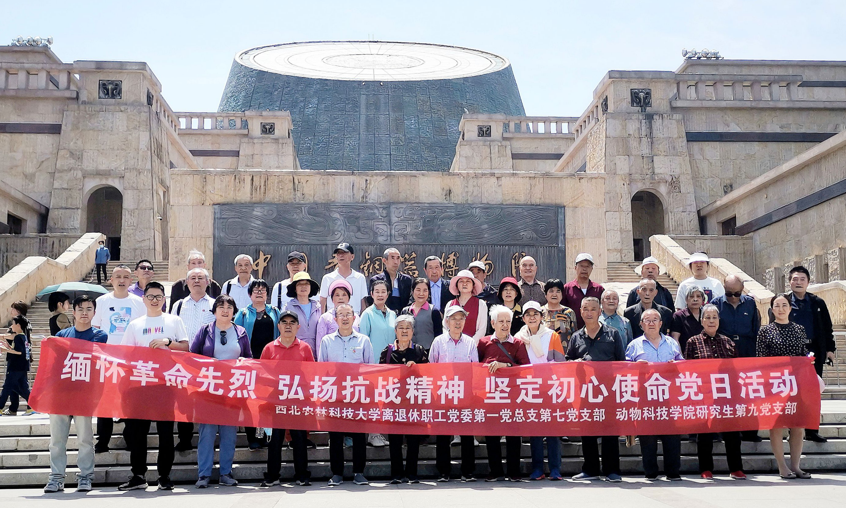 为学习贯彻习近平新时代中国特色社会主义思想主题教育,缅怀革命先烈、弘扬抗战精神、坚定初心使命,5月18日,离退休第一党总支第七党支部与小黄书 研究生第九党支部共同组织党员前往宝鸡市长乐塬抗战工业遗址、宝天铁路纪念馆、石文化廊桥、中国青铜器博物院开展参观学习。全程采取互联网线上视频链接,使年龄大的、有特殊情况去不了的,可以线上连网视频到我们现场参加党日活动。参加人员共计69人,其中线上25人,线下44人。
