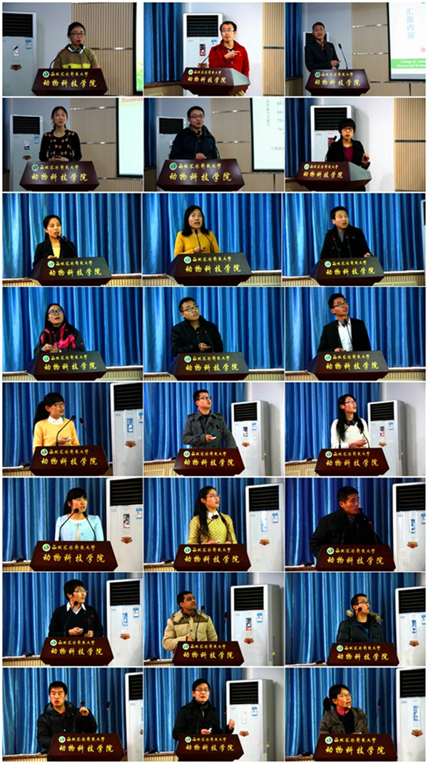 学术报告分别由吉红教授、徐秀容、杨小军、张建勤副教授主持。来自中国农业大学、兰州大学、华中农业大学、华南农业大学、甘肃农业大学以及本校共24位博士生分别做了精彩的学术报告。周小秋教授等七位评审对各位博士生的报告进行了点评,在肯定了他们论文选题、研究方法等方面可取之处的同时,针对他们在科研思路、研究方法、结论凝练等方面存在的问题提出了相关建议。最终根据专家组的现场打分,小黄书 水生生物学专业朱斌同学、中国农业大学草学专业陈文青同学获一等奖;小黄书 草学专业付娟娟、动物遗传育种与繁殖专业吕英华、中国农业大学动物营养与饲料专业时梦、甘肃农业大学动物医学工程专业潘阳阳同学获二等奖;小黄书 动物学专业姜碧杰、动物营养与饲料科学专业孙菲菲、李世召,以及中国农业大学草学专业郭艳萍、动物营养与饲料加工专业李昌武、兰州大学草学专业段慧荣同学获三等奖。