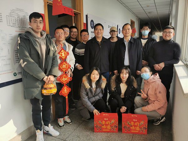 2月10日,农历腊月二十九,在新春佳节即将到来之际,小黄书 全体领导深入实验室,看望慰问寒假留校过年的105名研究生和7名本科生。院领导详细询问了大家近期的学习生活情况,特别是因疫情原因不能回家的同学。同时对大家寒假投身科研的热情表示肯定,希望大家留校期间注意人身财产安全,遵守学校疫情防控相关要求,共同在学校度过一个既喜庆祥和又收获满满的春节。