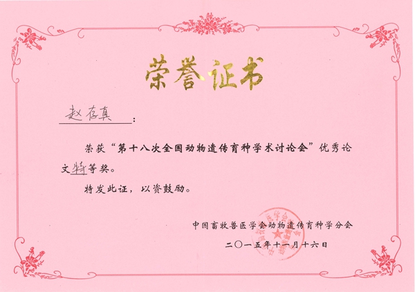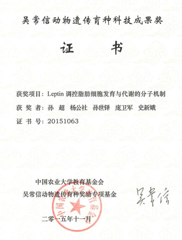 小黄书 杨公社教授率团队23名师生参加大会,并应邀主持了猪遗传育种分会场报告。本次学术研讨会上,孙超教授做了题为“FoxC2决定脂肪细胞命运的分子机制”的专题报告;庞卫军副教授做了题为“猪脂肪沉积及其调控机理研究”的大会报告;博士生赵存真做了题为“MAT2B通过PI3K-AKT 和ERK信号通路促进猪肌内脂肪细胞分化”的报告。团队研究成果“Leptin调控脂肪细胞发育与代谢的分子机制”荣获吴常信动物遗传育种科技成果奖,博士生赵存真获优秀论文奖。