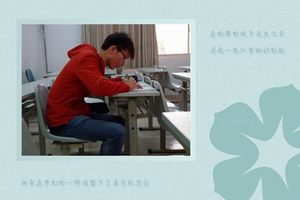 大一时他曾是班里的学习委员、学生会办公室部委。任凭学习任务繁重、工作事务冗杂,但他始终鞭策自己时间就像海绵里的水,只要愿挤总还是有的。有着学霸美称的他,认真制定学习计划,合理安排工作时间,见缝插针地学习,出色完成学业任务,积极组织学生活动。他的故事正印证了那句话:世上本无捷径,成功绝非偶然。