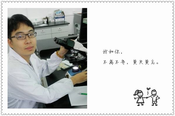 目前,他参与并负责学校国家级创新创业训练计划项目——西农萨能羊超长链脂肪酸延伸酶6基因启动因子最小活性中心的确定及转录因子SREBP对其转录调控作用的研究。一袭白袍,一张实验台,一支试管,一组数据,这就是他的课外活动;一个纯真的梦想,一份执着的守候,一句小心的嘱托,一个被拉长的背影,这就是他的大学生活。