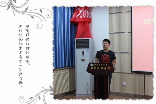个子高高的他有着温暖的笑容,学习中的他勤奋踏实,科研中的他严谨笃实、工作中的他认真负责,生活中的他乐观开朗,他就是2013级动物科学4班赵博同学。