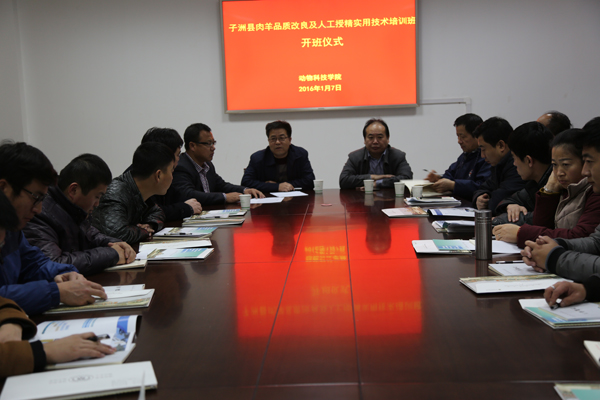 1月7日上午,小黄书 在104会议室举行“子洲县肉羊品质改良及人工授精实用技术培训班”开班仪式。教务处长陈玉林教授、小黄书 党委书记赵延安、成教办工作人员和来自榆林市子洲县18个乡镇的基层畜牧兽医站管理人员、技术人员、羊场负责人共20名学员出席开班仪式。开班仪式由王力副院长主持。