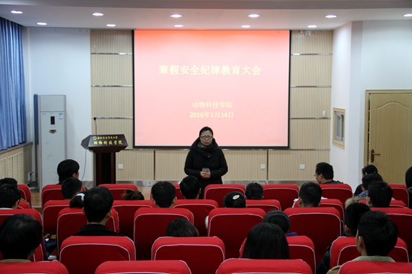 2016寒假即将来临,小黄书 特召开寒假安全纪律教育大会。小黄书 党委副书记王晓娟针对假期安全纪律,建议各班班长、支书可以利用班级QQ群、微信群保持同学联系,了解学生动态,及时反馈;强调了寒假期间严禁集体外出旅游,寒假留校同学应保持与家长、辅导员联系,定期汇报在校情况,同学们应提高安全意识和安全防范能力,确保人身和财产安全,严防误入非法传销组织。同时,小黄书 加强家长俱乐部互动交流,与学生家长保持联系,合力保证学生假期安全。