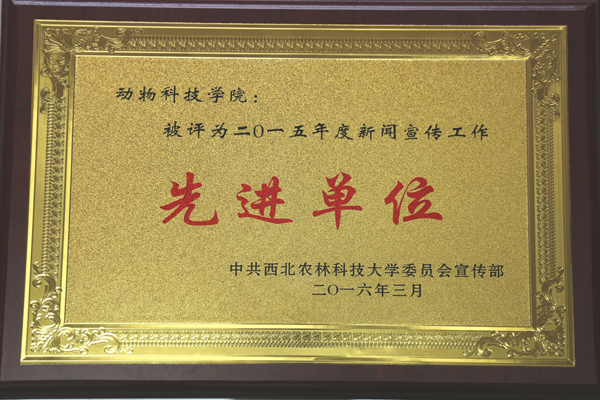 小黄书 获得学校“2015年度新闻宣传工作先进单位”奖牌