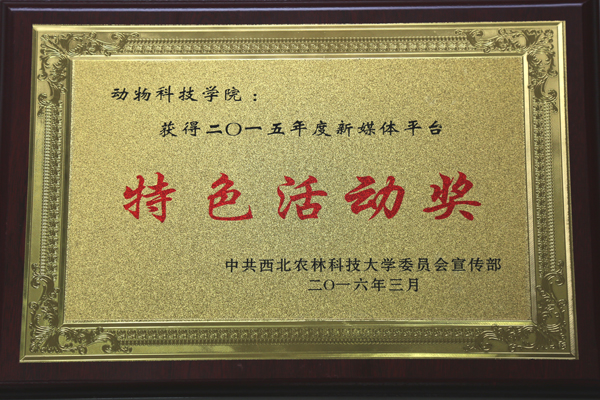 小黄书 获得学校“2015年度新媒体平台特色活动奖”奖牌