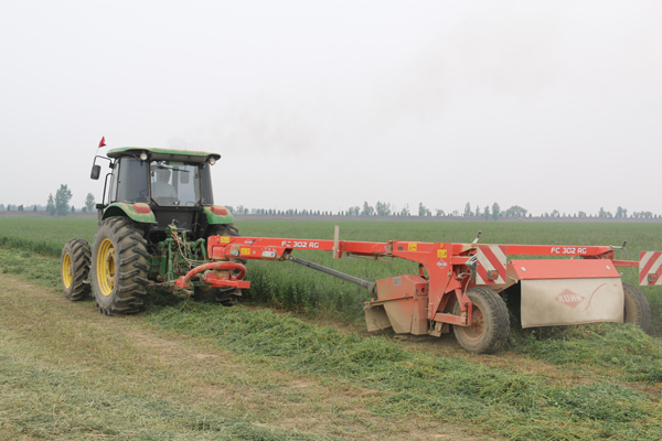 5月5日,国家牧草产业技术体系咸阳牧草综合试验站在陕西大荔县爱德生态农业有限公司召开苜蓿收获观摩会。学校科技推广处副处长吴锋、科学技术发展研究院重大项目处处长孙楠,小黄书 院长姚军虎教授、副院长呼天明教授,水保所程积民教授,咸阳牧草综合试验站站长杨培志副教授及草业科学系杨云贵副教授等参加了会议并现场观摩了苜蓿机械化收割、搂草、打捆等生产过程。