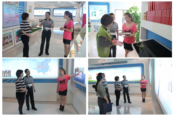 王书记一行在集团人力资源部经理冯君瑞、饲料事业部人行部彭栋秋、饲料事业部人行部招聘负责人张英萍陪同下,参观了集团展室,了解集团概况、发展历程、小黄书和产业链建设情况;在冯光德实验室和饲料生产车间,系统参观了解了设备仪器、生产流程和研发情况。