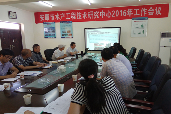 6月16日上午,安康市水产工程技术研究中心2016年工作会议在安康水产试验示范站顺利召开。安康市水利局唐大明副局长、科技局刘安琴总工程师、渔业局李志安副局长,岚皋县科技局张永品科长和安康市瀛湖管委会渔业局李婧科长等应邀出席会议。安康市绿水生态农业科技有限公司蒋仁轶董事长和马力总经理、小黄书 秦巴山区水生经济动物资源养护与开发利用团队相关科研人员及研究生参加了本次会议。会议围绕安康市水产工程技术研究中心2015年工作进展和2016年工作计划进行了探讨交流。