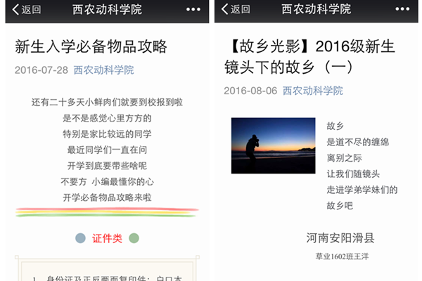 线下有礼包,线上更是惊喜连连。小黄书 建立2016级新生群和2016级新生家长群,通过网络及时答疑解惑。同时,小黄书 充分利用新媒体的优势,在官方微信以及易班平台上推出了多项新生活动,帮助同学们提前了解大学生活。新生必备攻略系列想新生之所想,答新生之所问,切实服务新生,提供便利;寄语系列通过线上平台让新生提前熟悉辅导员老师与班主任老师,将推送深入人心;故乡光影系列更是给予新生表现自我,展示家乡的好机会。