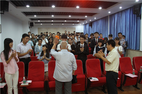 参加赠书仪式的学生全体起立,为马教授回报以热烈的掌声。学生代表李堂正激动地说:“听了马教授的报告,被他‘生命不息,工作不止,心系党和人民’的精神所深深打动,我们青年学子更要抓紧时间努力丰满自己的羽翼,我们会认真阅读老先生的劳动成果,细心体味、努力践行,让自己成为更加优秀的西农人。”