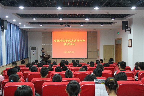 在赠书仪式上,马章全老师亲手向学生代表送上精编的《励志成才箴言集锦》,对党委宣传部及小黄书 的支持表示感谢,并对编书的心路历程及内容进行了介绍。《集锦》收集了古代先贤、近代科学家、身边的教授及成功的企业家等经典感悟,分为“理想信念、珍惜时光、勤学笃行和励志奋进”的四部分内容。经过认真打磨,核对删改10次,整编成册以激励年轻一代成长成才,不负春光。马老师结合自己的学习、工作经历,强调同学们一定要树立正确的理想信念,为国家和人民作出贡献;鼓励学生不忘初心,抓紧时间,明确奋斗目标;作为动科学生,更要关注“三农”问题,要坚信在畜牧行业的大有可为、大有作为,珍惜青春时光,有理想、有坚持、有责任、踏实奉献,为国家发展奋勇前行。