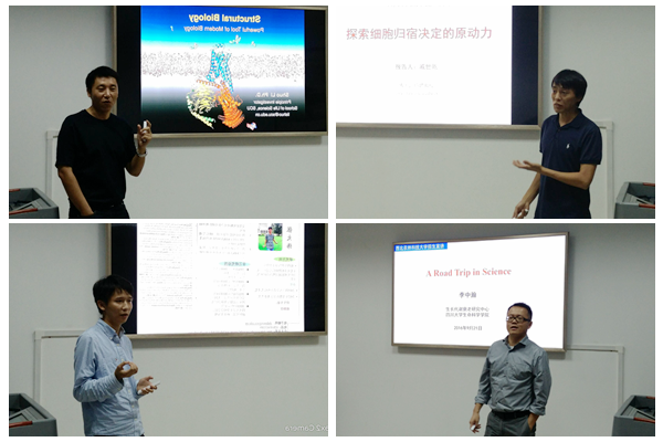 宣讲会上,李中翰教授详细讲解了自己的研究方向:体细胞重编程,胚胎干细胞自更新和定向分化以及非编码 RNA对其的调控机制研究;并介绍了实验室的仪器设备、实验室成员、实验室待遇等。张阳研究员对植物生理学与分子生物学实验室做详细介绍,主要从事植物次生代谢工程、次生代谢产物对植物的生理学意义的研究;李硕博士对结构生物学进行详细介绍,并重点讲解了实验室的培养模式、发展规划、招生计划等;博士生导师戚世乾对生物大分子结构研究团队进行介绍。并就同学们关心的科研兴趣确定、科研定位、研究生学业规划等做出详细解析。会后,同学们就研究方向、科研规划、实验室概况与老师们进行激烈的交流。老师们表示,欢迎小黄书 的优秀学子报考四川大学生命科学小黄书 。