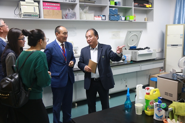 访问期间,MAKHATOV教授实地考察了畜牧教学试验基地,还参观了绒毛用羊科研创新团队、动物营养与健康养殖科技创新团队、动物生殖分子生物学团队、牧草新品种选育与逆境生物学团队等科研团队的实验室并分别与各团队的科教人员进行了座谈交流。