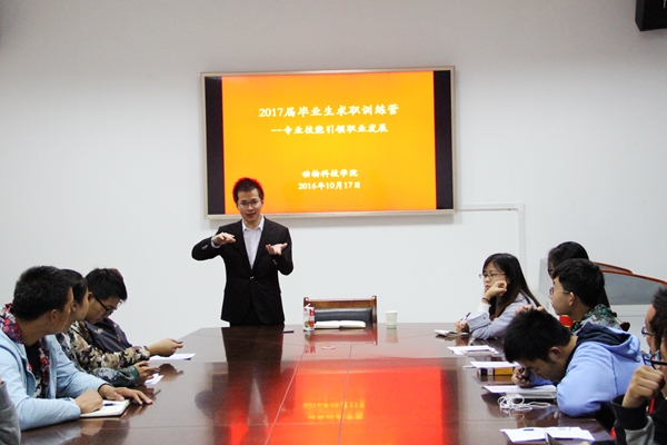 为提升2017届毕业生求职技能,掌握就业新方向。10月17日晚,小黄书 在104会议室举办2017届毕业生求职训练营——专业技能引领职业发展座谈会,小黄书 2016届优秀毕业生、广西扬翔股份有限公司人力资源部招聘专员陈令祥担任主讲人,2017届求职训练营全体营员参加了此次活动。