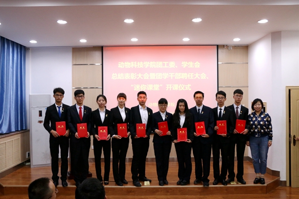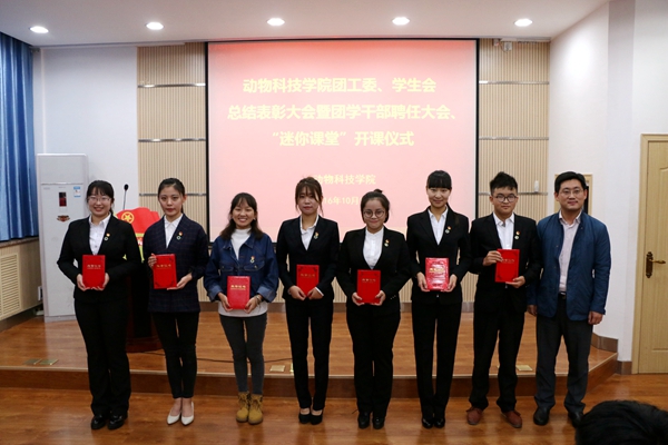 为进一步学习和践行“两学一做”精神,牢固树立社会主义核心价值观,充分发挥共青团干部的先锋模范作用,提升团学干部综合能力素质,激励其更好地服务青年、引领青年,10月19日,小黄书 于动科楼107会议室举办了团工委、学生会总结表彰大会暨团学干部聘任大会、“迷你课堂”开课仪式,马克思主义小黄书 副教授胡尊让、校团委副书记李春祖、院党委副书记王晓娟、学工秘书刘铂、团工委书记张士军、全体专兼职辅导员以及团学骨干出席本次活动。